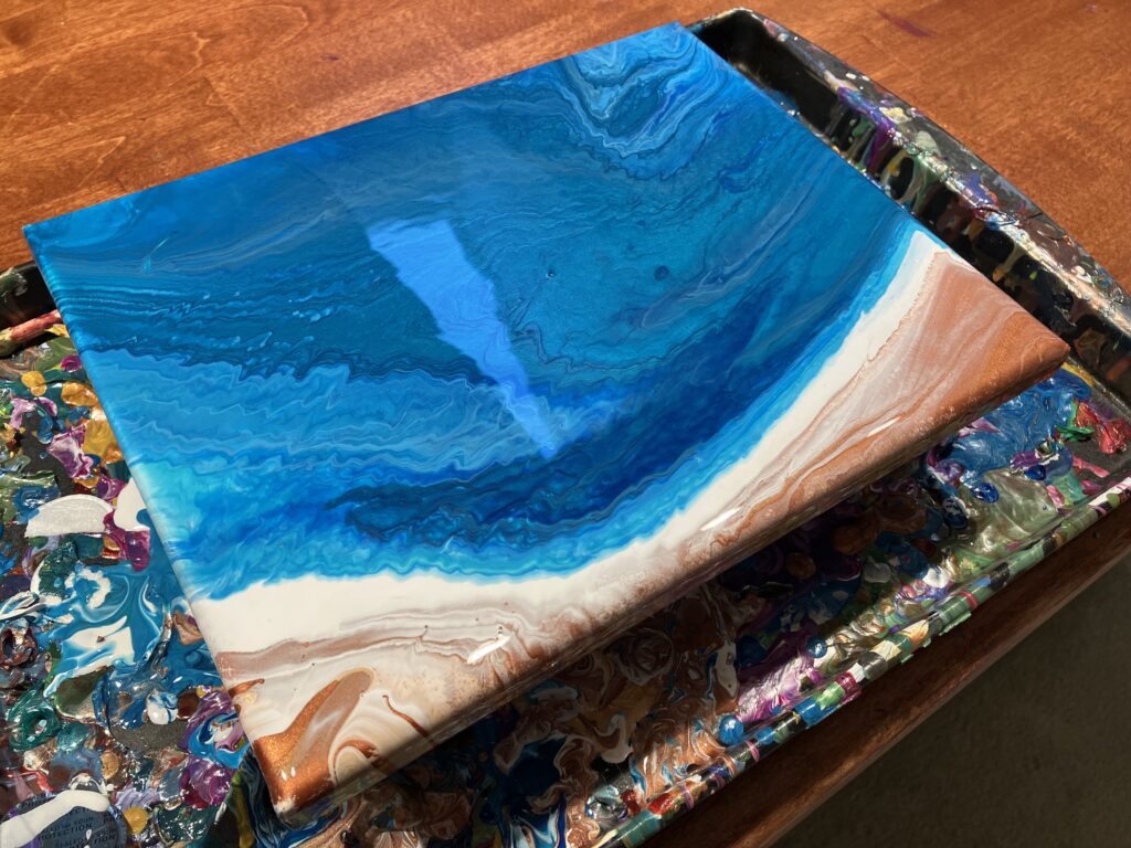 Then, a few weeks ago, we booked a trip to visit close friends on Cape Cod. I’ve always loved the Cape and its proximity to the ocean. My relationship with the sea is complex—its vastness is both calming and terrifying. As a thank-you for hosting us, I wanted to create something special, so I decided to paint something inspired by the ocean. Once the painting was finished, I realized I still wanted to do more. I wanted to write a poem about what the ocean meant to me. And that’s when I thought, Wait, what?!